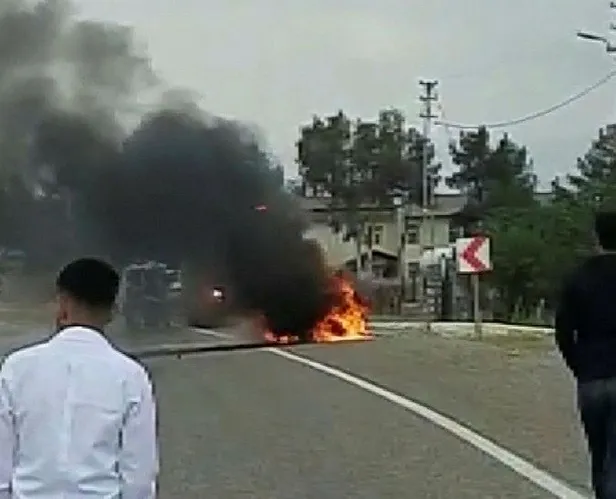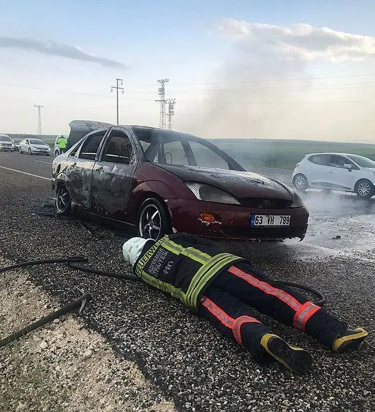 Şanlıurfa istikametinden Adıyaman istikametine gelmekte olan yabancı uyruklu Hümedi El Hümedi idaresindeki otomobil, seyir halindeyken bir anda yanmaya başladı. Alevlerin kısa sürede aracı esir almasının ardından sürücü canını zor kurtardı.