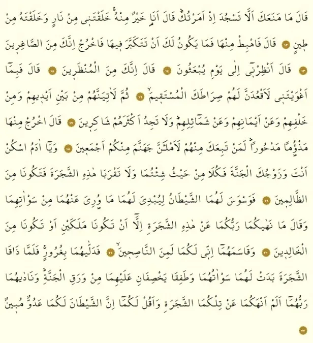 22.Fe dellahüma bi ğurur fe lemma zakaş şecerate bedet lehüma sev'atühüma ve tafika yahsifani aleyhima miv verakıl cenneh ve nadahüma rabbühüma e lem enheküma an tilküemş şecerati ve ekul leküma inneş şeytane leküma adüvvüm mübın