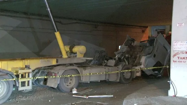 İstanbul Pendik'te açık kalan dorsesi alt geçide çarpan hafriyat kamyonunun sürücüsü yaralandı.