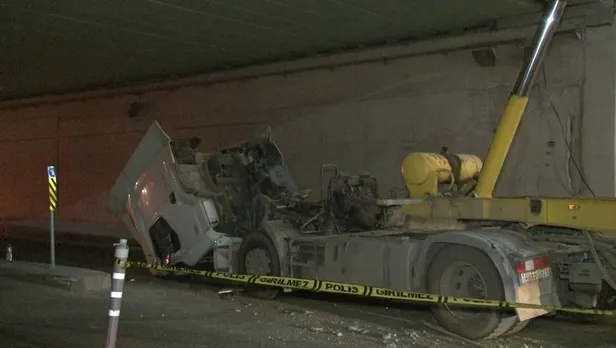 İstanbul Pendik'te facianın eşiğinden dönüldü! Dorsesi açılan kamyon alt geçite çarptı