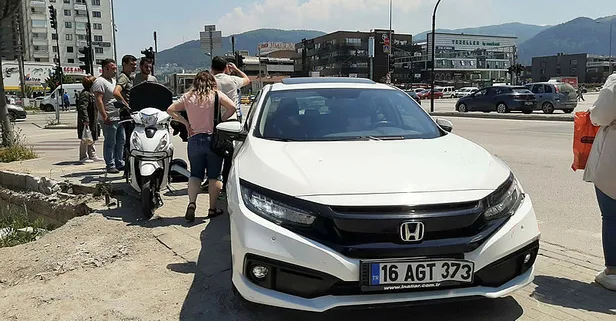 Bursa'da ehliyetine el konulan otomobil sürücüsü önce bisiklete sonra motora çarptı. Otomobil sürücüsü kazanın şokuyla önce kaçtı, sonra geri geldi. Çarpmanın etkisiyle yola savrulan bisikletli ve motorlu sürücü yerde kıvranırken, biri sigara içti diğeri ise yerde acı içinde vatandaşlardan tabanca istedi.
