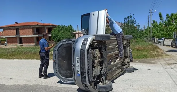 Edirne'de kavşakta kaza yapan araç yan yattı: 1'i çocuk 2 yaralı