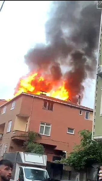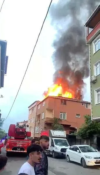 Sultanbeyli'de 4 katlı binanın çatı katı alevlere teslim oldu.