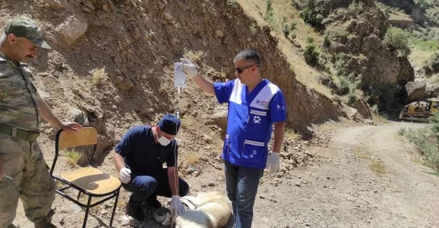 Hakkari-Çukurca karayolu üzerinde bulunan Hazal Deresi kenarında yılanın bir köpeği ısırdığı ihbarı üzerine Veteriner İşleri Müdürlüğü ekipleri harekete geçti.