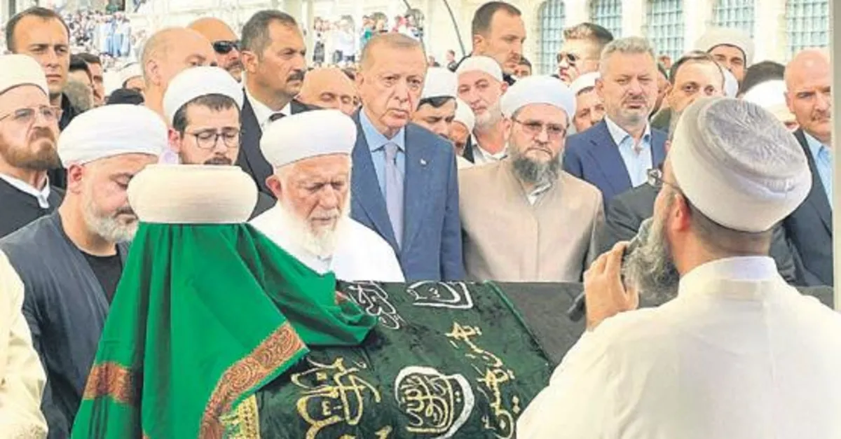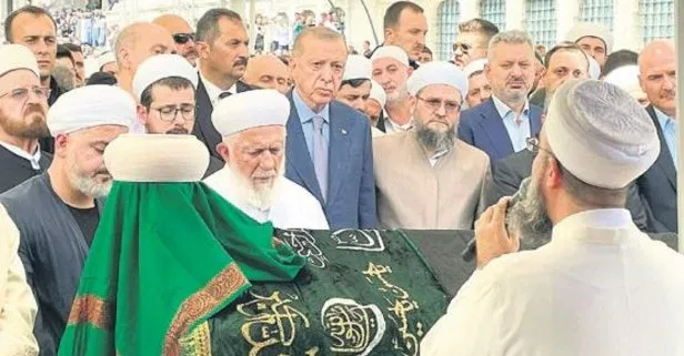 Başkan Erdoğan, dün İsmailağa Cemaati lideri Mahmut Ustaosmanoğlu’nun Fatih Camii’ndeki cenaze törenine katıldı. “Kendisini tanıdık, bildik ve bu imanıyla biz sevgili habibine komşu olacağına inanıyoruz” ifadesini kullandı.