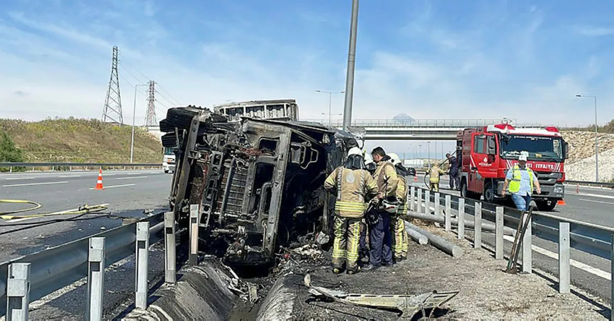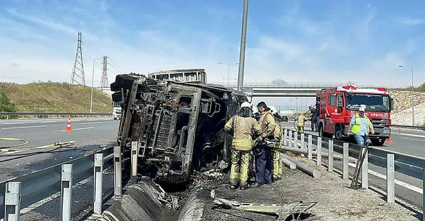 Kuzey Marmara Otoyolu'nda seyir halinde olan tır sürücüsü direksiyon hakimiyetini kaybederek yan yattı. Refüje çarpan araç bir anda yanmaya başladı. Araç içerisinde sıkışan sürücü yanarak hayatını kaybetti.