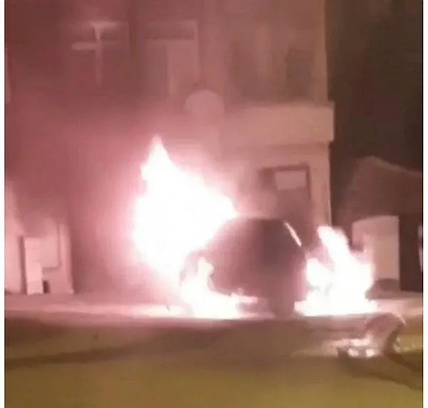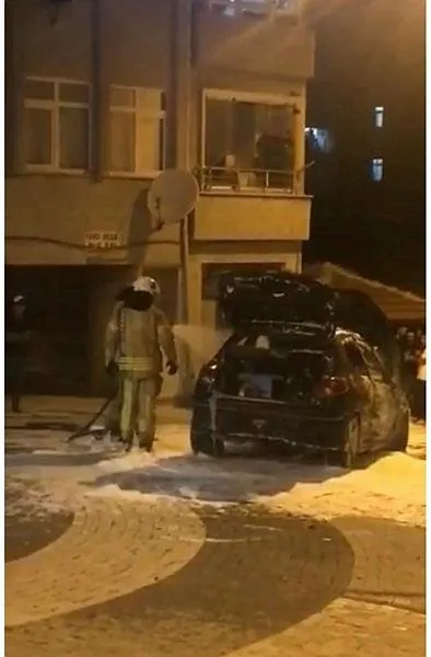 İstanbul Silivri'de park halindeki otomobil alev alev yandı