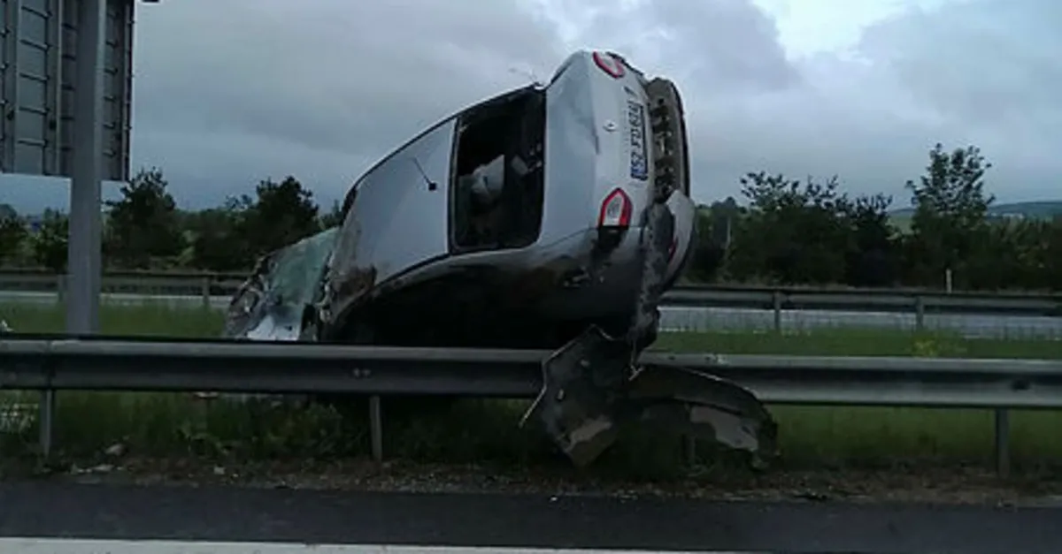 Bolu TEM Otoyolu'nda refüje çarpıktan sonra takla atan otomobil bariyerlerde asılı kaldı. Hurdaya dönen otomobilde bulunan 3 kişi yaralandı. Kaza, saat 05.00 sıralarında TEM Otoyolu Gerede ilçesi Yazıkara köyü mevkiinde meydana geldi. Edinilen bilgiye göre, İstanbul istikametine seyir halinde olan Fahri A. yönetimindeki 52 FD 624 plakalı otomobil, kontrolden çıkarak refüje çarptıktan sona takla attı. Takla attıktan sonra bariyerlerin üzerinde asılı kalan otomobildeki sürücü ve araçta bulunan Dudu A. ile Serap K. yaralandı.