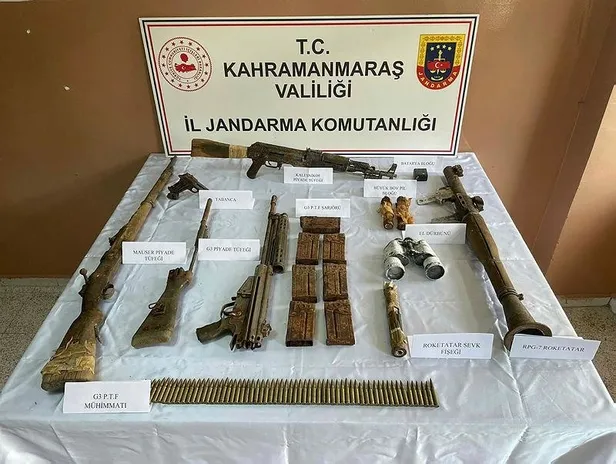 Ülkemizin terörle ve teröristlerle olan mücadelesi başarılı bir şekilde sürmeye devam ediyor. Bu kapsamda Kahramanmaraş'ın Çağlayancerit ilçesi kırsalında teröristlere ait çeşitli silah ve mühimmatlar bulundu.