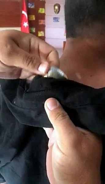 K.Ü. (39) ile M.S.İ.'nin (37) üst aramasında gömlek yaka kısmında kabartı olduğunu fark eden polis ekipleri, detaylı üst aramasında kamera, ses düzeneği ve verici aparatı tespit etti.