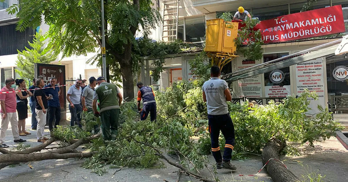 Ankara'da facianın eşiğinden dönüldü! 10 metrelik ağacın dalı yol ortasına devrildi