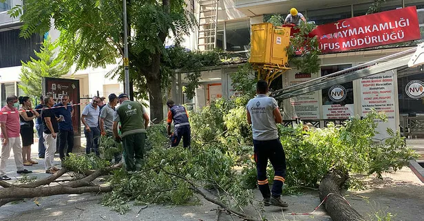 Ankara'da Çankaya İlçe Nüfus Müdürlüğü önünde bulunan 10 metre uzunluğundaki bir ağacın dalı devrildi. Facianın ucuz atlatıldığı olay güvenlik kamerası görüntülerine de yansıdı.