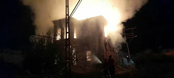 Alınan bilgiye göre, ilçeye bağlı Kale Mahallesi'nde Hacer Şahin'e ait iki katlı ahşap evde henüz bilinmeyen bir sebepten dolayı yangın çıktı. Komşuların haber vermesi üzerine olay yerine itfaiye ekipleri ve polis sevk edildi.