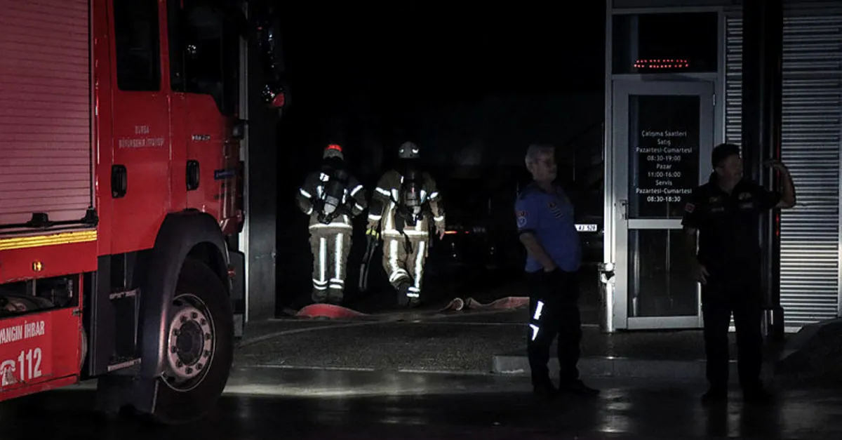 Yangın, saat 03.00 sıralarında merkez Nilüfer ilçesi, Ürünlü Mahallesi'nde meydana geldi. İzmir Yolu Caddesi'nde bulunan dünyaca ünlü lüks bir araç firmasına ait otomobil bakım servisinde henüz bilinmeyen bir nedenle yangın çıktı. Otomobil yedek parçalarının bulunduğu depo kısmında başlayan yangın, kısa sürede büyürken alevleri fark eden görevlilerin ihbarı üzerine bölgeye çok sayıda polis, sağlık ve itfaiye ekibi sevk edildi. Polis ekipleri çevrede güvenlik önlemi alırken, itfaiye ekipleri yangına müdahale etmek için çalışma başlattı. Depoda bulunan kimyasalların yanması nedeniyle zor anlar yaşayan itfaiye ekipleri, yangını otomobillerin bulunduğu satış galerisi ve araç bakım bölümlerine sıçramadan kontrol altına almak için yoğun çaba sarf etti. Yangın, ekiplerin yaklaşık 2 saatlik müdahalesinin ardından kontrol altına alınarak söndürüldü.