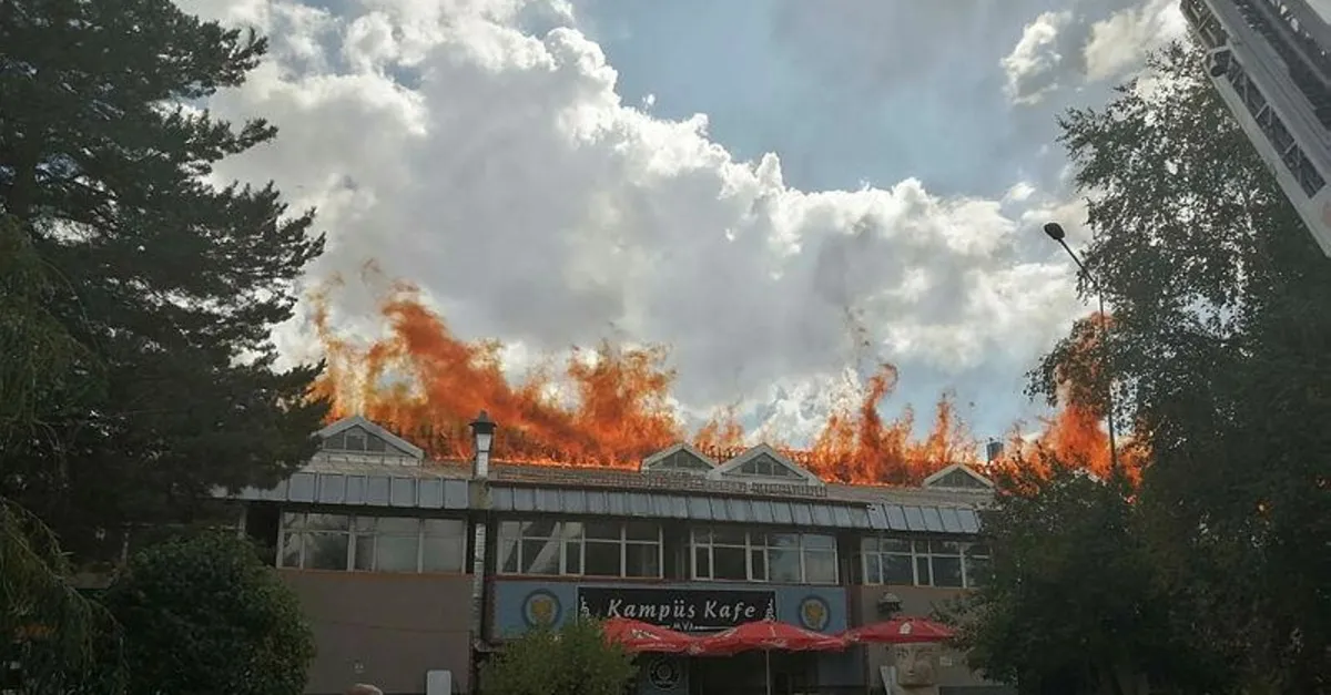 Üniversite kampüsü içindeki merkezi yemekhanede, öğle saatlerinde, henüz belirlenemeyen nedenle yangın başladı.