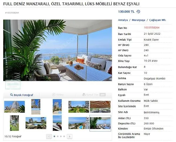 Savaştan kaçan Rus ve Ukraynalıların yaşamak için ilgi gösterdiği kentte, deniz kenarındaki lüks dairelerin aylık kirası, 100 bin lirayı aştı. Emlak ilanlarında denize sıfır ya da yakın mesafede konumlanan dairelerin lüks döşendiği göze çarptı. Muratpaşa ilçesi Lara bölgesindeki 4+1 lüks daire için aylık 130 bin lira kira, 260 bin lira depozito bedeli istenirken, Konyaaltı'nda 3+1 lüks daire için aylık 125 bin lira kira ve 125 bin lira depozito bedeli istendi. İlanlarda her 2 lüks daire için 1 yıllık kira ücretinin peşin talep edildiği notu yer aldı.