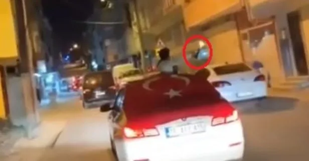Bursa'da asker konvoyunda gençlerden biri, seyir halindeki araçtan dışarıya çıkardığı tabanca ve yarı otomatik silah ile havaya doğru defalarda ateş etti. O anlar ise arkasında bulunan bir kişin cep telefonu kamerasına saniye saniye yansıdı.