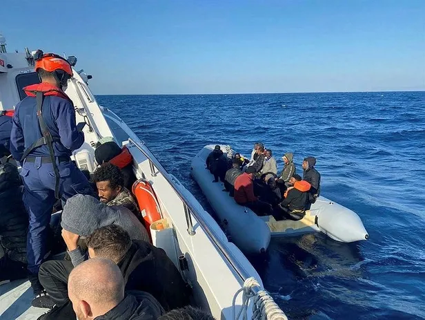 Ekipler, lastik bot içerisindeki 15 düzensiz göçmeni karaya çıkardı.