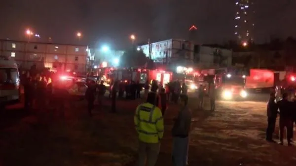 Yangın, saat 02.00 sıralarında Finanskent Mahallesi'nde bulunan inşaat şantiyesindeki konteyner evlerde meydana geldi.
