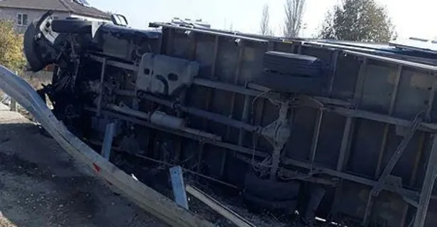 Son dakika haberleri... Bilecik'te seyir halinde kontrolden çıkan kamyonet, bariyerleri aşarak devrildi. Kazada kamyon sürücüsü yaralanırken polis inceleme başlattı.