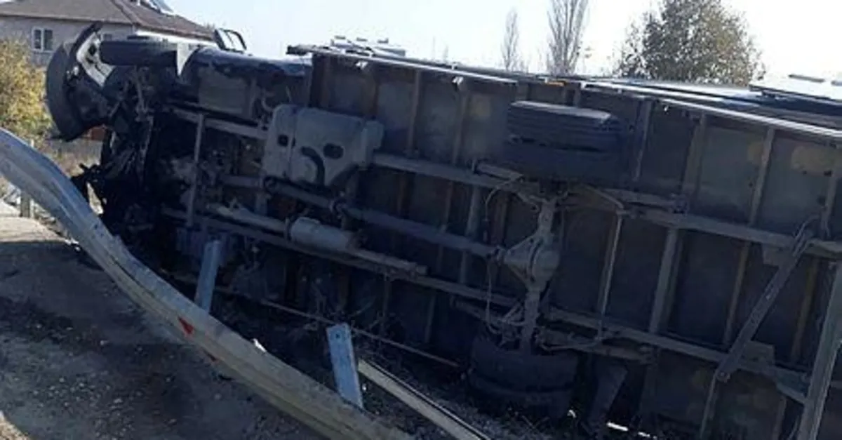 Bilecik'te seyir halinde kontrolden çıkan kamyonet, bariyerleri aşarak devrildi.