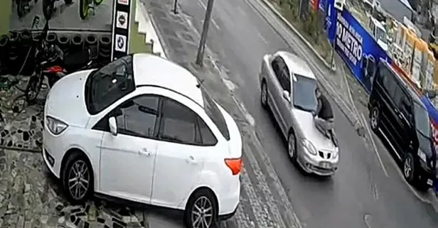 Ümraniye'de bir kişi, iddiaya göre borç verdiği adam otomobile binip kaçmaya çalışınca, kaputa çıkarak durdurmaya çalıştı. Otomobil sürücüsünün kaputu tutan kişiyi düşürmeye çalıştığı anlar kameraya yansıdı.