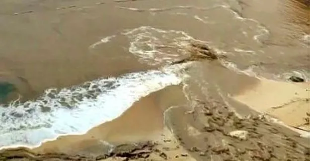Yüksek kesimlerden gelen çamurlu su ise Kaputaş Plajı'nda denizin rengi kahverengiye döndü.