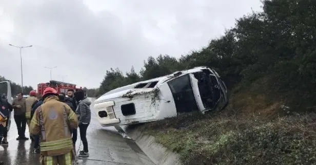 Son dakika haberi! İstanbul Eyüpsultan'da yağışlı havanın da etkisiyle havalimanına yolcu götüren servis minibüsü kaza yaptı. Kazada 2'si ağır 10 kişi yaralandı.