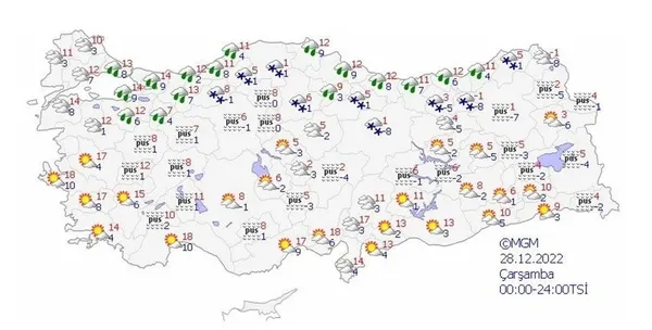 Yağışların kıyı kesimler ile Güneydoğu Anadolu'nun güneyinde yağmur ve sağanak, yağış alan diğer yerlerde karla karışık yağmur ve kar şeklinde olması bekleniyor.
