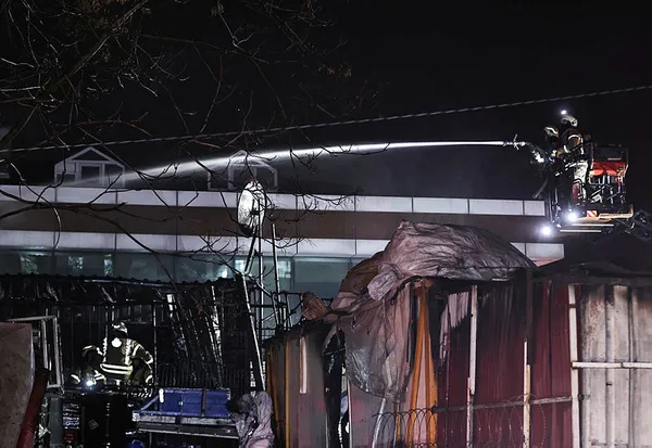 İtfaiye ekipleri yangına müdahale ederken, emniyet görevlileri de güvenlik önlemi aldı.