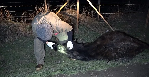 Düzce'nin Yenitaşköprü köyü ile Kuşaçması köyünü birbirine bağlayan yol üzerinde 4 büyükbaşı fark eden köylüler, durumu jandarmaya bildirdi. Olay yerine gelen jandarma ekipleri, yaptıkları incelemenin ardından İl Tarım ve Orman Müdürlüğü'ne durumu iletti. Olay yerine gelen İl Tarım ve Orman Müdürlüğü'ne bağlı veteriner hekimler ile Düzce Veteriner Hekimler Odası Başkanı Şerif Ali Karanfil, ağızlarından köpük gelen hayvanları inceleyerek numune aldı. Ölen buzağıyı ise köpeklerin parçaladığı ihtimali üzerinde duruldu.