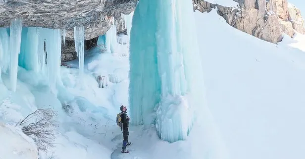 Van’ın Erek Dağı'nda bulunan sütun şelalesi hayran bıraktı