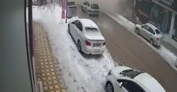 Görüntülerde cadde üzerinde depreme yakalananların büyük korku ve panikle sağa sola kaçıştıkları görülürken, trafikte seyir halinde olan bir aracın ise çöken binanın oluşturduğu toz bulutu arasında gözden kaybolduğu görülüyor.