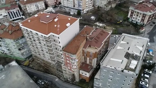 Bağcılar'da bulunan 9 katlı binanın alttan 4 katı farklı bir bina, diğer 5 katı ise farklı bina gibiydi.