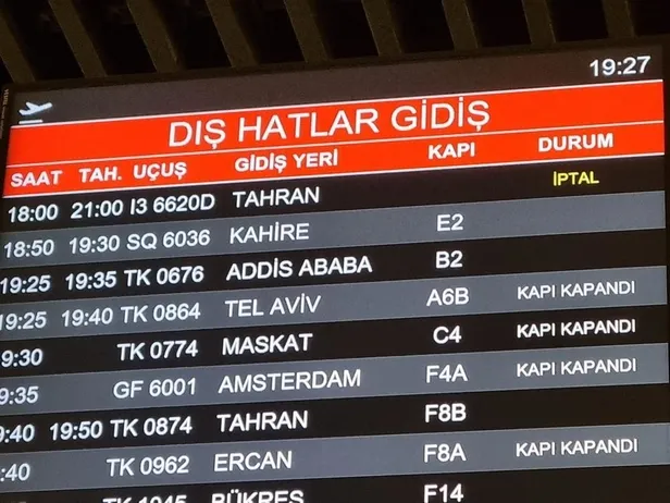 Ata Airlines'ın I3-6620 sefer sayılı Tahran seferini yapan Airbus A320 tipi yolcu uçağı, saat 16.15'de İstanbul Havalimanı'ndan havalandı.