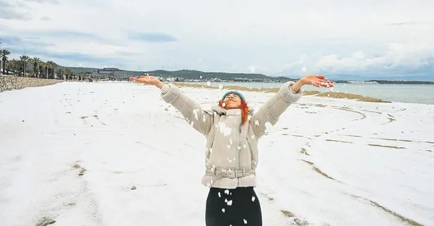 Türkiye'nin gözde tatil bölgesi İzmir Çeşme'den gelen kareler, herkesi şoka uğrattı. Gece boyu etkili olan dolu yağışı, Ilıca Plajı'nı beyaza boyadı. Plaj kumunu kaplayan dolu, görsel şölen yaşattı.