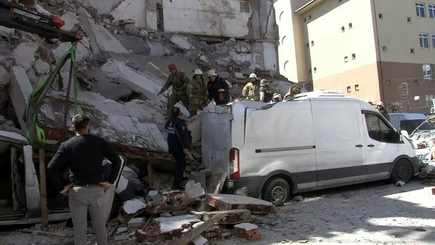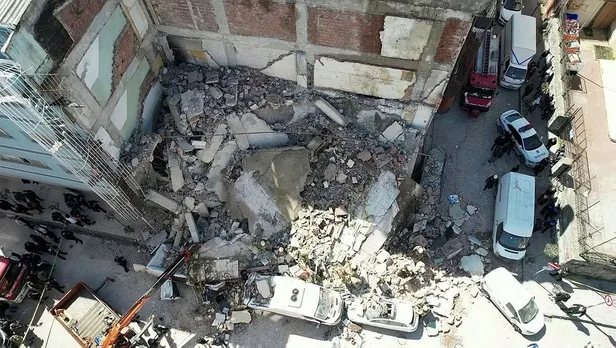 Çöken bina araçların üzerine devrildi. İhbar üzerine olay yerine çok sayıda polis, itfaiye, sağlık ekipleri sevk edildi.