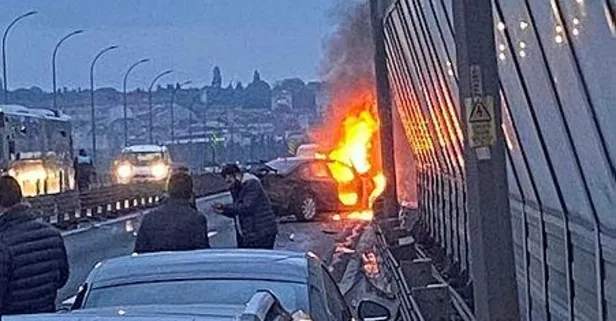 Haliç Köprüsü Edirne istikametinde meydana gelen kazada bir araç alev alev yandı.