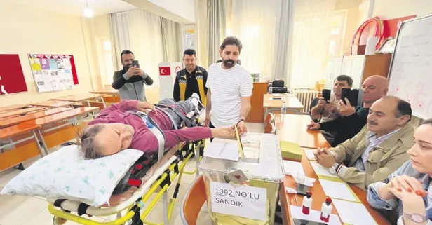 Tekirdağ Çerkezköy'de diyaliz hastası Yüksel Eceli ambulansla getirildiği okulda sedye üzerinde oy kullandı!