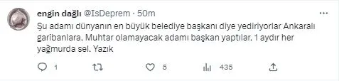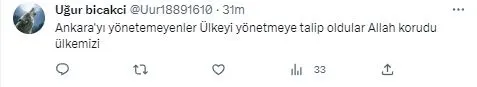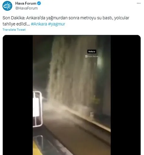 Ankara'da öğle saatlerinde başlayan kuvvetli sağanak bazı bölgelerde su baskınlarına sebep oldu. Sağanak nedeniyle ev ve iş yerleri su ile doldu, cadde ve sokaklar göle döndü, araçlar ise suya gömüldü. Sosyal medyada yer alan görüntülerde metroyu da su bastığı iddia edildi. CHP'li Ankara Büyükşehir Belediyesi'nin altyapı ve hizmet yetersizlikleri dolayısıyla vatandaşlar zor anlar yaşadı. Ankaralılar, yaşadıkları bu durum karşısında Ankara Büyükşehir Belediye Başkanı Mansur Yavaş'a sosyal medya üzerinden tepki gösterdi. Öte yandan Ankara Valisi Vasip Şahin, bazı alt geçitlerin kapatıldığını sosyal medya hesabından duyurdu.