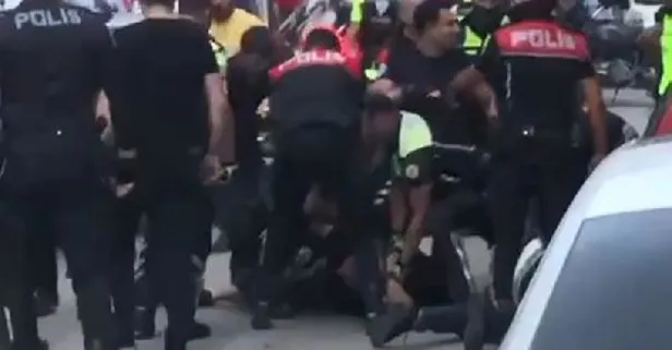 Bu sırada bazı araç sahipleri, sürücüye tepki gösterip, kullandığı otomobili durdurdu. Ardından çevredekilerin de katılmasıyla sürücü tekmelenip, sopalarla aracının ayna ve camları kırıldı.