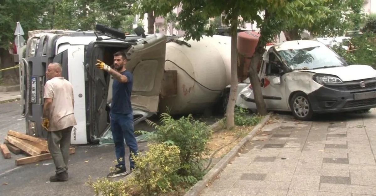 Kadıköy'de sokağa hızla giren bir beton mikseri park halindeki araçların üzerine devrildi. 4 aracın hasar gördüğü kazada beton mikseri sürücüsü hafif yaralandı.