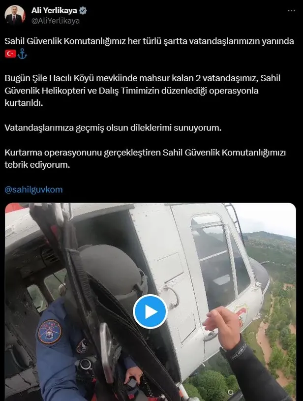 Şile'de nefes kesen operasyon: Yağmur sonrası mahsur kalanlar helikopterle kurtarıldı! O anlar Sahil Güvenlik kamerada