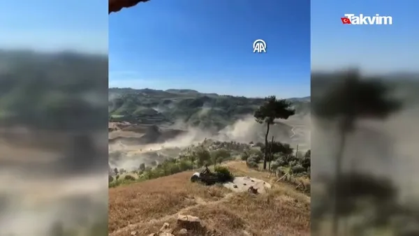Depremin hemen ardından çekilen görüntü de kırsal alanda toz bulutu oluştuğu görüldü.