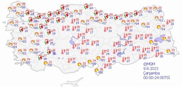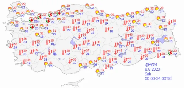 Türkiye'yi etkisine alan Eyyam-ı Bahur sıcakları haftasonu artan yüksek nem oranlarıyla boğucu bir havaya neden olacak. Meteoroloji Genel Müdürlüğü'den alınan bilgilere göre, sıcaklık Ege ve Akdeniz kıyıları ile Güneydoğu Anadolu'da mevsim normallerinin 2 ila 4 derece, diğer bölgelerimizde 4 ila 8 derece üzerinde seyretmeye devam edecek. Uzun süredir devam eden sıcakların, Salı gününden itibaren azalması ve yerini serin bir havaya bırakması bekleniyor. Balkanlardan gelen serinletici hava dalgasıyla birlikte, yağışların da görülmesi muhtemel. İşte uzmanların hafata sonu ve önümüzdeki hava durumu için tahminleri...