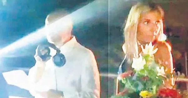 Bu sırada sahneye çıktı. Eline mikrofonu aldı. Ve 47 yaşındaki sevgilisi Seymandi tarafından nasıl aldatıldığını tane tane açıkladı. Sevgililerinin ismini saydı. Nişanı attı. Töreni şu sözlerle noktaladı: Ben Cristina'ya sevme özgürlüğü veriyorum.