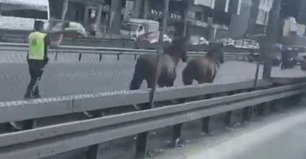 D-100 kara yoluna giren 2 at Avcılar'dan Bakırköy'e kadar koştu. Yolda atları gören sürücüler şoke oldu.