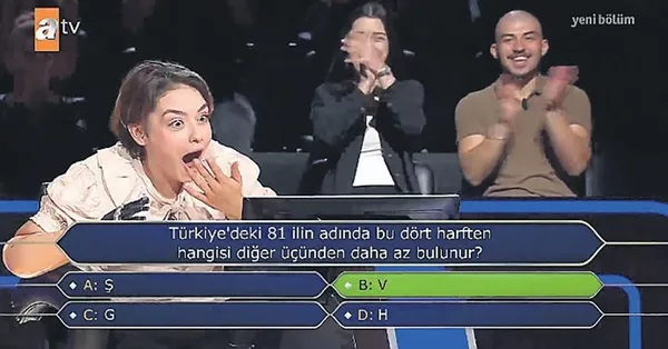 Doğru cevap olan V harfini bilip ödülü kazandı. Başarılı performası ve sempatik halleriyle herkesi kendine hayran bırakan genç kız, yarışmaya adını altın harflerle yazdırdı.