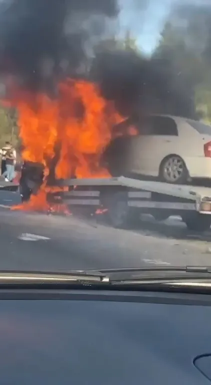 Son dkaika haberleri... TEM Otoyolu Düzce geçişinde otomobil yüklü çekici, TIR'a çarpıp alev aldı. Kazada 1 kişi yanarak hayatını kaybetti, 2 kişi ise ağır yaralandı.