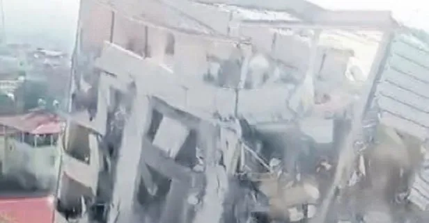 Hatay'da 8 katlı bina korna sesiyle bir anda yıkıldı!